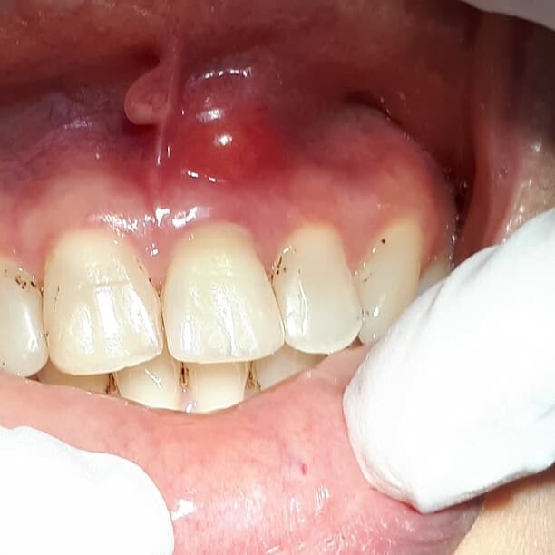 Gingival abscess. This is an abscess on the gums.