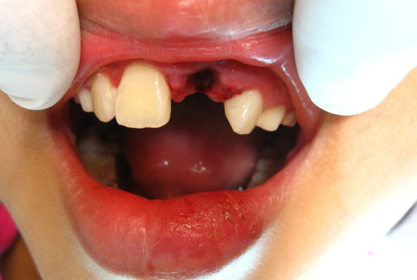 Dental avulsion is when a tooth has completely come out of its socket, following a trauma to the mouth. This could happen to either a primary (baby) tooth or a permanent (adult) tooth. The trauma could be just a fall at home – fainting and hitting the ground face first, or a sporting injury.