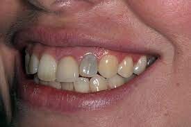 Dental restorations, such as fillings, can give the appearance of grey or blue teeth – you may have seen this in your teeth if you have a silver-coloured filling (also known as dental amalgam). That’s because this material, along with glass ionomer, acrylic, porcelain, and metal crowns, may appear blue-grey at the tooth’s surface due to the metallic colour showing through a translucent enamel or porcelain surface. If the grey or blue teeth are due to silver fillings, a dentist can often refill the tooth with a white amalgam.