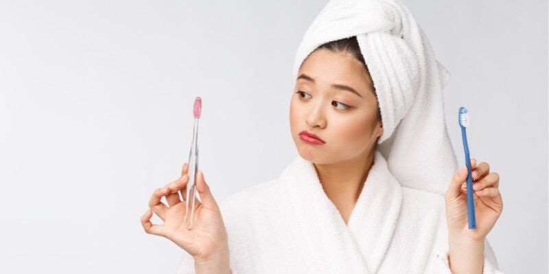 So, what should you look for next time you head to the store to replace your toothbrush? Many people are under the impression they need to be tough on plaque to fully clean their teeth. However, choosing a hard-bristled toothbrush can end up being hard on your enamel and gums instead. This is why it is best to choose a soft-bristled toothbrush that will gently clean away plaque and food particles instead of damaging your teeth.