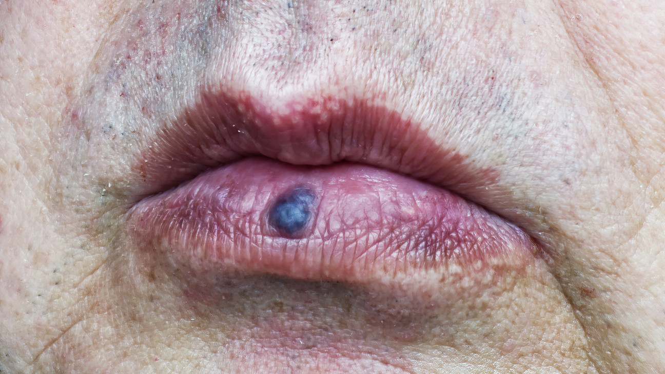 A venous lake is the swelling of a vein under your skin, tends to affect the elderly, and can show on your lip, ears, or face.
