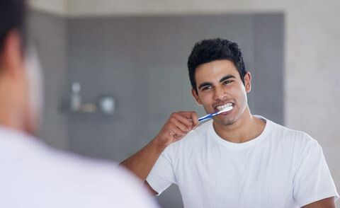 Gently brush twice daily with fluoride toothpaste.