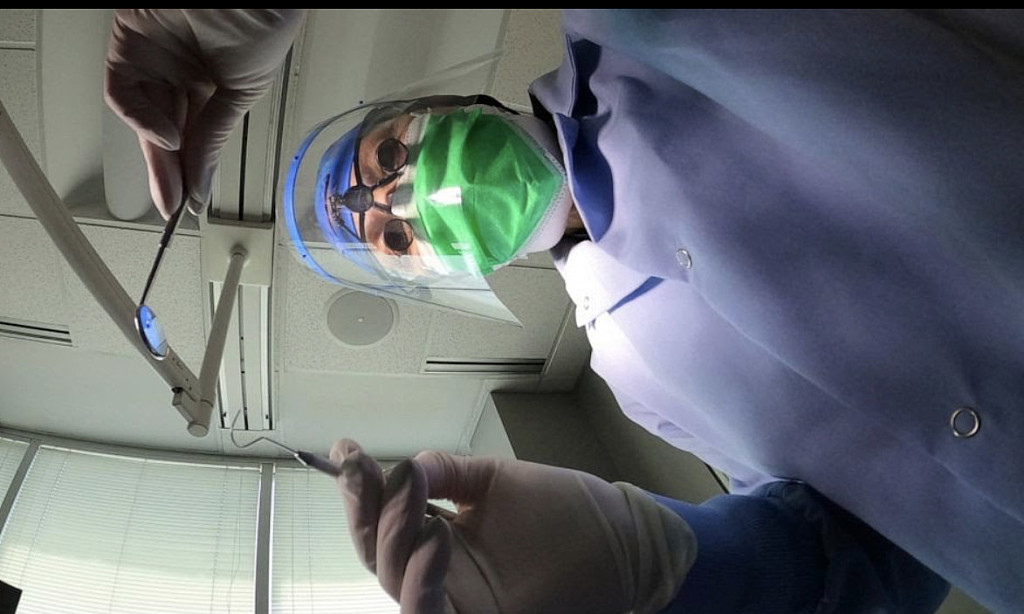 Dental work requires close quarters, and can generate a spray of saliva and water. Norbo and other dentists have returned to using hand tools for procedures like a teeth cleaning instead of instruments that may do the job faster, but create more of that spray.