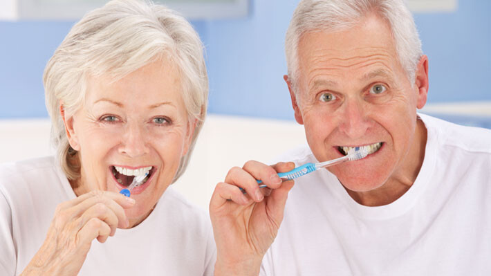 Gently brush twice daily with fluoride toothpaste.