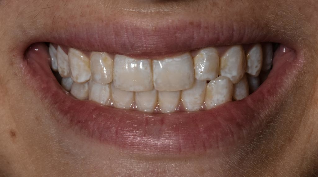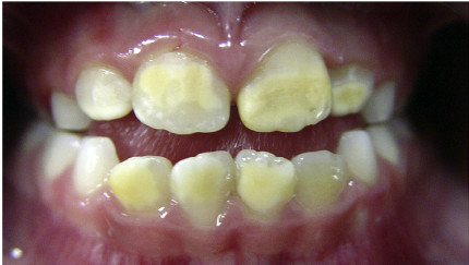 This condition is a defect that causes a lesser quantity of enamel than normal. It can appear as a white spot, yellow to brown staining, pits, grooves or even thin, chipped or missing parts of enamel. In severe cases, the enamel doesn’t develop at all.