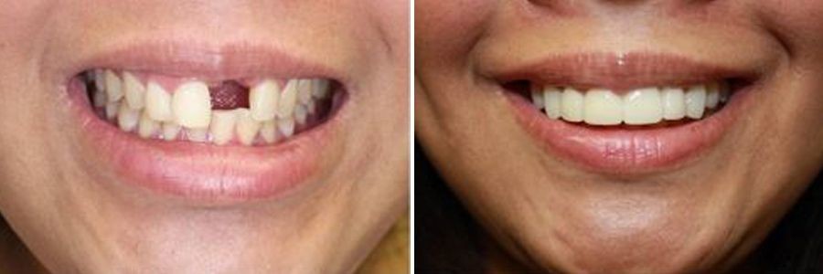 A dental implant is the most sophisticated way to replace a missing front tooth and it can provide a highly aesthetic outcome. A single implant-supported crown looks amazingly natural because it will emerge from your gums just like a real tooth, rather than sitting on your gums which is the case with a bridge tooth or with a dental flipper. There will be no need for our dentist to reshape the adjacent teeth and often a dental implant can be the healthiest way to restore a front tooth.