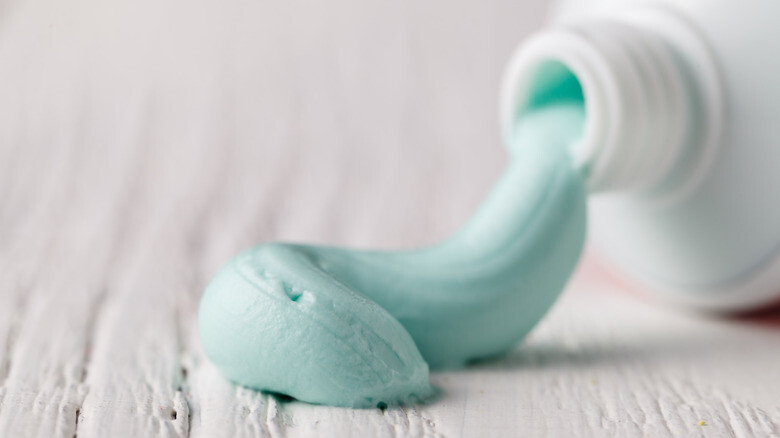 Chances are, you're probably allergic to your toothpaste, which can definitely happen, as Colgate says toothpaste can contain a laundry list of ingredients that can cause a localized reaction. These include gluten, fluoride, fragrance, and flavorings like cinnamon. In an article written for Dental Buzz, dental hygienist Trish Walraven even called toothpaste a cosmetic, which we use because it tastes good — and not because it provides your mouth and teeth with any extras.